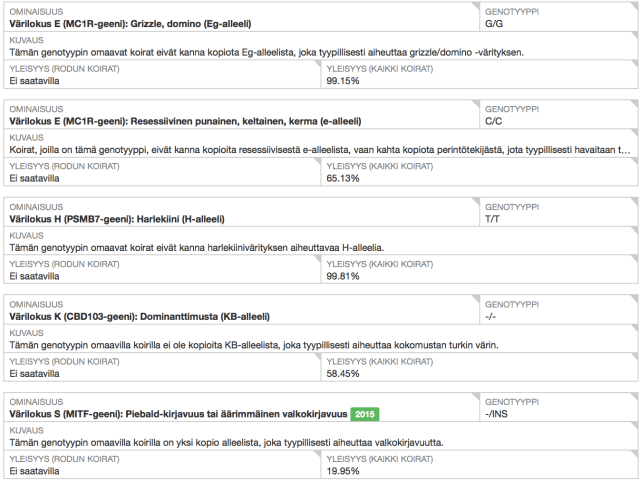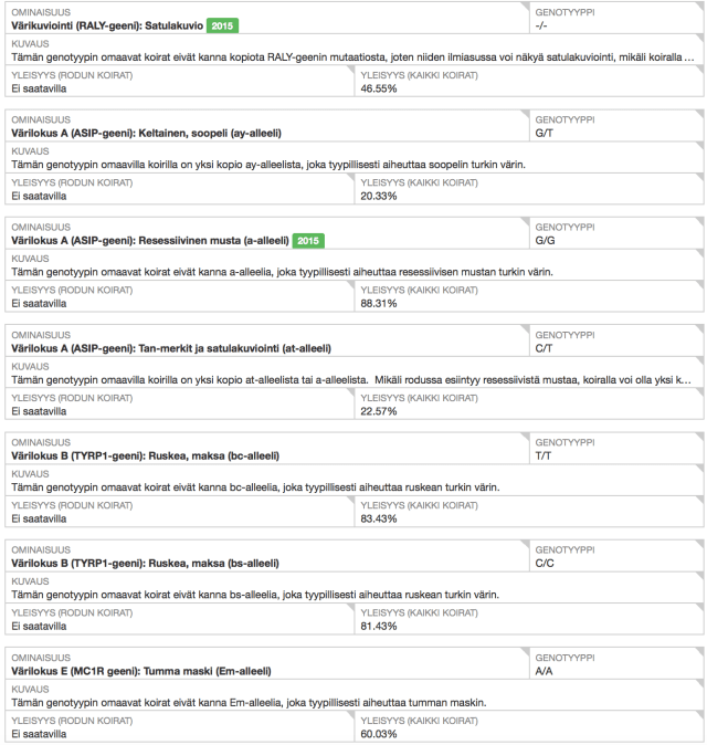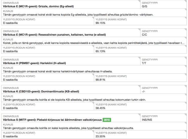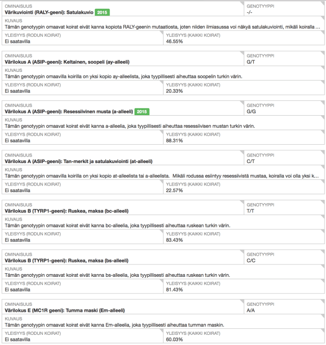 - Aivan identtiset genotyypit molemmilla koirilla.