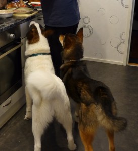 Treenin jälkeen molemmat saivat pienet herkkupalat keittiön puolta, ai että.