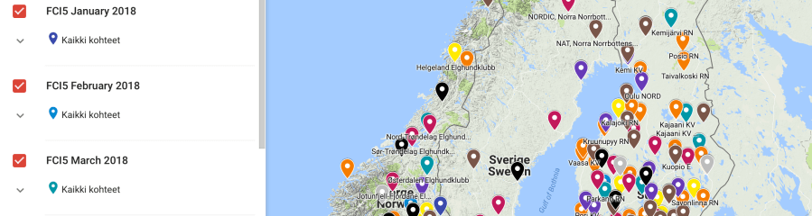 Hyvä lukija, nysse on valamis! Eli näyttelykartta 2020 FCI5 ryhmän rodulle itäsiperianlaika. Nyt pitäisi pystyä hakemaan näyttelyitä; A) näyttelytyypin perusteella valikoimalla "Showtype" B) tuomarin perusteella valitsemalla "Judge"-listasta haluamansa C) kuukauden perusteella valitsemalla "Month" -listasta kiinnostavimman kuukauden Huom! pahoittelen finlandia, ääkköset ja öökköset eivät ole plugin ystäviä. Näyttelykarttaa päivitetään systemaattisen satunnaisesti, tavoitteena parantaa vielä kartan käytettävyyttä …